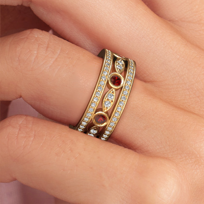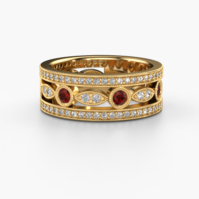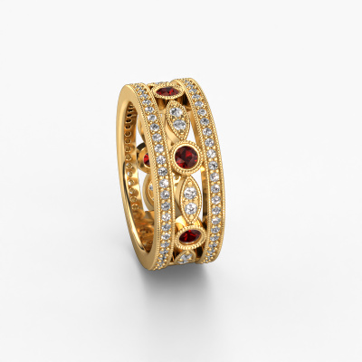 Do you have a vintage fetish? Then this gold Jessica ring suits you perfectly. It's a contemporary design, based on vintage designs. A slightly romantic, extraordinary design! Even more when you customize to your liking. This special ring is set with exquisite garnet. As you can see, you can simply choose a gemstone that matches your style. Each gemstone is carefully selected by our merchants whom are spread throughout the world. Nothing but the best gems for our expert goldsmith! After all, it is his crowning glory!The special Jessica ring, as shown here, can be customized to your liking. Our online tool offers many different options but please feel free to contact us if you want changes made to your Jessica ring, which are unavailable in our online tool.Because we design and deliver our own rings, we can offer you a ring at a price you won't find anywhere else. A ring is made to order, which helps prevent excess supplies, so we can make you a great price offer. We understand it feels risky, buying your ring online, but we will gladly assist in the designing process, taking your budget into consideration.To make it easier for you, we offer a 30 day return policy. Check our terms and conditions.