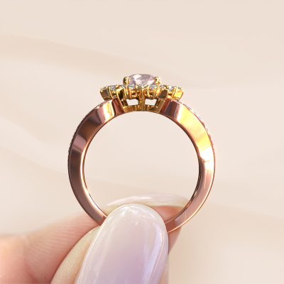 How would you describe your own style? Are you looking for something uniquely different? This special rose gold Chasidy 2 ring is astonishing! Simply customize to your or her own liking. This ring is set with morganite champagne. These morganite champagne have been carefully selected because your ring must be adorned with nothing but the most beautiful gemstone. Wouldn't you agree? Our expert goldsmith will create your ring in our own crafting studios, where the morganite champagne will be set with care. The ring will then be polished to perfection to give it that extra sparkle. It's a perfect ring for a woman of excellent taste!The best part of this special ring is that you can customize it to your own liking. Your style, your choice, your ring. On top of that, your traditional rose gold ring will be made by hand with eco-friendly materials! Please feel free to easily customize the ring, using our online tool.By using a combination of the latest modern techniques, combined with ancient crafting, we can make all our rings in our own studio. Each jewel is made to order. This is advantageous because we can offer you a price you won't find anywhere else.To make it easier for you, we offer a 30 day return policy. Check our terms and conditions.