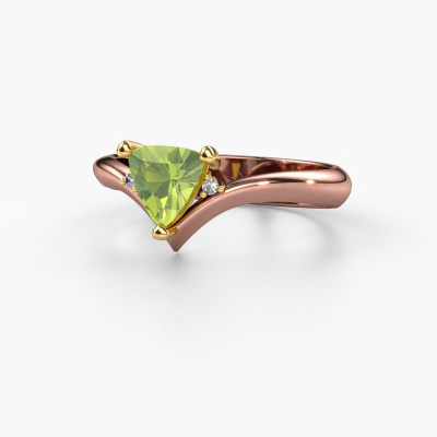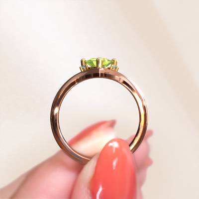 This ring called Arlette is made of 14 Carat rose gold and is set with peridot. Are you in the market for a unique rose gold ring with a modern twist? Then this ring might suit you. Simply customize to your or her liking. It suits the contemporary