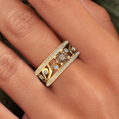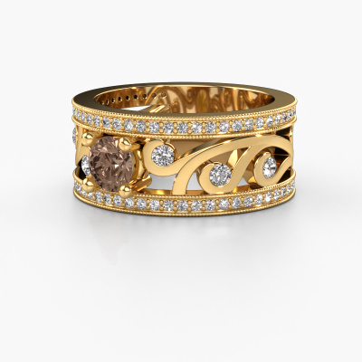 Do you have a vintage fetish? Then this gold Sanne ring suits you perfectly. It's a contemporary design, based on vintage designs. A slightly romantic, extraordinary design! Even more when you customize to your liking. This special ring is set with exquisite brown diamonds. As you can see, you can simply choose a gemstone that matches your style. Each gemstone is carefully selected by our merchants whom are spread throughout the world. Nothing but the best gems for our expert goldsmith! After all, it is his crowning glory!Customize your own specialSanne ring, which will then be created by our goldsmiths with great passion. Do you prefer a different option than is shown here in the gold Sanne ring? Then our online tools offers various options. Feel free to ask us for help if you are unable to succeed. We are happy to answer your questions!After receiving your order, our goldsmiths will start the creative process of making your Sanne ring. We don't keep stock. This is advantageous because these costs will not be passed on to you. Therefore, we can offer jewellery at exceptionally low prices.To make it easier for you, we offer a 30 day return policy. Check our terms and conditions.