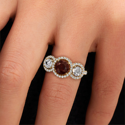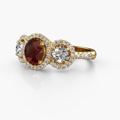 This exclusive gold Lacie ring is a true work of art! This ring is made of 14 Carat gold and is set with 6.5 mm round garnet. The smallest ornaments are crafted by our goldsmith with a lot of patience and great passion. In order to create this ring with great precision, this craft requires a keen eye and a skilful hand. A challenge which ignites a fire in our expert goldsmiths. The exquisite garnet are set in a way that their unique qualities are strengthened. This gives the ring an even more glamorous appearance. The ring is unique by itself though, because of the natural birthstones we selected especially for this Lacie ring. And by choosing the precious metal yourself, you create a unique ring. Customize your own specialLacie ring, which will then be created by our goldsmiths with great passion. Do you prefer a different option than is shown here in the gold Lacie ring? Then our online tools offers various options. Feel free to ask us for help if you are unable to succeed. We are happy to answer your questions!Because we design and deliver our own rings, we can offer you a ring at a price you won't find anywhere else. A ring is made to order, which helps prevent excess supplies, so we can make you a great price offer. We understand it feels risky, buying your ring online, but we will gladly assist in the designing process, taking your budget into consideration.To make it easier for you, we offer a 30 day return policy. Check our terms and conditions.