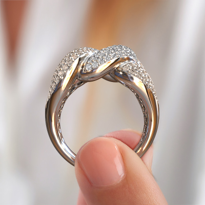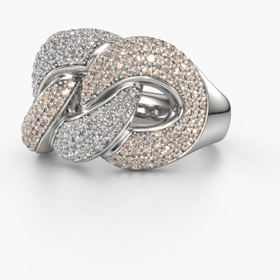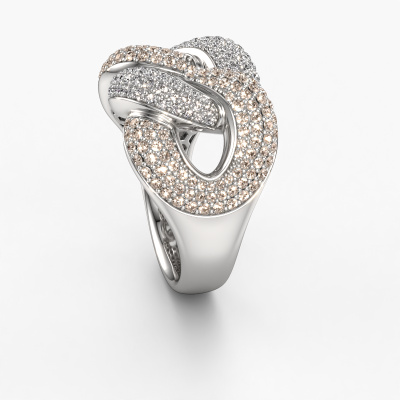 This pave set ring is called Kylie 3 15mm. This platinum ring is set with brown diamonds 1.682 crt. The band of this platinum ring is set with rows of brown diamonds which seem to have no beginning nor end. Our goldsmith carefully selects the