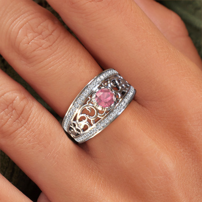 Do you have a vintage fetish? Then this platinum Marilee ring suits you perfectly. It's a contemporary design, based on vintage designs. A slightly romantic, extraordinary design! Even more when you customize to your liking. This special ring is set with exquisite tourmaline pink. As you can see, you can simply choose a gemstone that matches your style. Each gemstone is carefully selected by our merchants whom are spread throughout the world. Nothing but the best gems for our expert goldsmith! After all, it is his crowning glory!A customized vintage ring is the perfect gift! New exquisite designs are added daily by our team of passionate goldsmiths. And each design can be customized. Simply customize the precious metals and the colour of gemstones which will be used, for example. This makes your design of the vintage Marilee ring truly unique!After receiving your order, our goldsmiths will passionately start the creative process of making your ring in our own studio. Because we don't have a big stockpile, these costs will not be passed on to you. Our pricing is proof of that! We offer top quality jewels at lowest price, guaranteed.To make it easier for you, we offer a 30 day return policy. Check our terms and conditions.