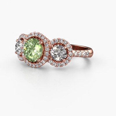 This exclusive rose gold Lacie ring is a true work of art! This ring is made of 14 Carat rose gold and is set with 6.5 mm round green lab grown diamond. The smallest ornaments are crafted by our goldsmith with a lot of patience and great passion. In order to create this ring with great precision, this craft requires a keen eye and a skilful hand. A challenge which ignites a fire in our expert goldsmiths. The exquisite green lab grown diamonds are set in a way that their unique qualities are strengthened. This gives the ring an even more glamorous appearance. The ring is unique by itself though, because of the natural birthstones we selected especially for this Lacie ring. And by choosing the precious metal yourself, you create a unique ring. Customize your own specialLacie ring, which will then be created by our goldsmiths with great passion. Do you prefer a different option than is shown here in the rose gold Lacie ring? Then our online tools offers various options. Feel free to ask us for help if you are unable to succeed. We are happy to answer your questions!Because we design and deliver our own rings, we can offer you a ring at a price you won't find anywhere else. A ring is made to order, which helps prevent excess supplies, so we can make you a great price offer. We understand it feels risky, buying your ring online, but we will gladly assist in the designing process, taking your budget into consideration.To make it easier for you, we offer a 30 day return policy. Check our terms and conditions.