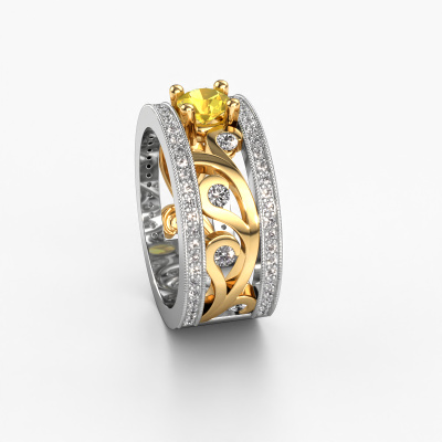 Do you have a vintage fetish? Then this white gold Sanne ring suits you perfectly. It's a contemporary design, based on vintage designs. A slightly romantic, extraordinary design! Even more when you customize to your liking. This special ring is set with exquisite yellow sapphire. As you can see, you can simply choose a gemstone that matches your style. Each gemstone is carefully selected by our merchants whom are spread throughout the world. Nothing but the best gems for our expert goldsmith! After all, it is his crowning glory!Customize your own specialSanne ring, which will then be created by our goldsmiths with great passion. Do you prefer a different option than is shown here in the white gold Sanne ring? Then our online tools offers various options. Feel free to ask us for help if you are unable to succeed. We are happy to answer your questions!After receiving your order, our goldsmiths will start the creative process of making your Sanne ring. We don't keep stock. This is advantageous because these costs will not be passed on to you. Therefore, we can offer jewellery at exceptionally low prices.To make it easier for you, we offer a 30 day return policy. Check our terms and conditions.