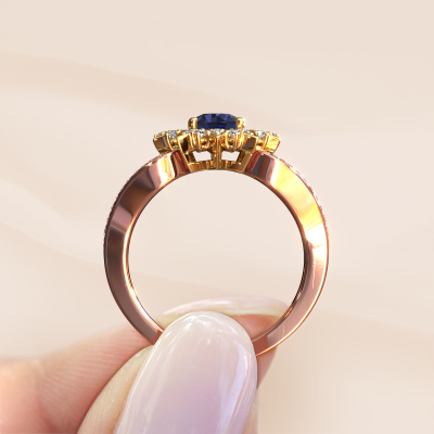 How would you describe your own style? Are you looking for something uniquely different? This special rose gold Chasidy 2 ring is astonishing! Simply customize to your or her own liking. This ring is set with sapphire. These sapphire have been carefully selected because your ring must be adorned with nothing but the most beautiful gemstone. Wouldn't you agree? Our expert goldsmith will create your ring in our own crafting studios, where the sapphire will be set with care. The ring will then be polished to perfection to give it that extra sparkle. It's a perfect ring for a woman of excellent taste!The best part of this special ring is that you can customize it to your own liking. Your style, your choice, your ring. On top of that, your traditional rose gold ring will be made by hand with eco-friendly materials! Please feel free to easily customize the ring, using our online tool.By using a combination of the latest modern techniques, combined with ancient crafting, we can make all our rings in our own studio. Each jewel is made to order. This is advantageous because we can offer you a price you won't find anywhere else.To make it easier for you, we offer a 30 day return policy. Check our terms and conditions.