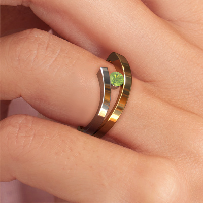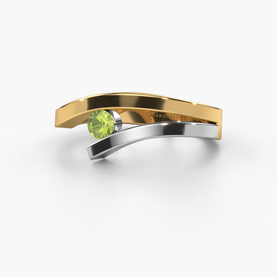 This ring called Evalyn 1 is made of 14 Carat gold and is set with peridot. Are you in the market for a unique gold ring with a modern twist? Then this ring might suit you. Simply customize to your or her liking. It suits the contemporary modern woman. This stylish ring is set with beautiful peridot. This has been carefully selected. Because your ring must be adorned with nothing but the most stunning gemstone. Our expert goldsmith will create your ring in our own studio, where the peridot will be set with great care. The ring will then be polished to perfection to create a stunning ring. By using a combination of the latest modern techniques, combined with ancient crafting, we can make all our rings in our own studio. Each jewel is made to order. This is advantageous because we can offer you a price you won't find anywhere else.New jewellery designs are added to our online collection daily. Our team of passionate designers strive to create extraordinary and diverse designs. Have you seen a ring you like? Please feel free to contact us. Based on a good price/ quality ratio, we will make you an offer you can't refuse!To make it easier for you, we offer a 30 day return policy. Check our terms and conditions.
