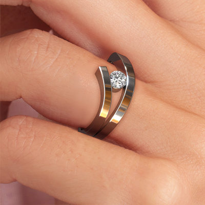 This ring called Evalyn 1 is made of 14 Carat white gold and is set with diamond. Are you in the market for a unique white gold ring with a modern twist? Then this ring might suit you. Simply customize to your or her liking. It suits the contemporary modern woman. This stylish ring is set with beautiful diamond. This has been carefully selected. Because your ring must be adorned with nothing but the most stunning gemstone. Our expert goldsmith will create your ring in our own studio, where the diamond will be set with great care. The ring will then be polished to perfection to create a stunning ring. By using a combination of the latest modern techniques, combined with ancient crafting, we can make all our rings in our own studio. Each jewel is made to order. This is advantageous because we can offer you a price you won't find anywhere else.New jewellery designs are added to our online collection daily. Our team of passionate designers strive to create extraordinary and diverse designs. Have you seen a ring you like? Please feel free to contact us. Based on a good price/ quality ratio, we will make you an offer you can't refuse!To make it easier for you, we offer a 30 day return policy. Check our terms and conditions.