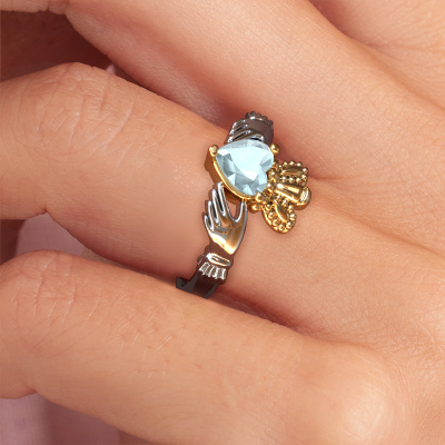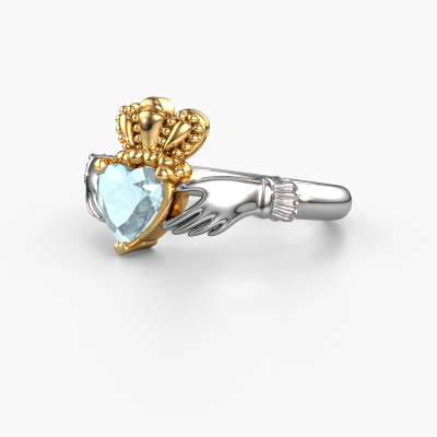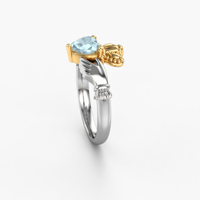 This Irish Claddagh ring is a sign of love set with a heart aquamarine. It is a remarkable, symbolic ring in which a crowned heart, held by two hands, is shown. The heart of a Claddagh ring is a symbol of love, the hands represent friendship and the crown, loyalty. A beautiful piece of jewellery to either give or receive! This symbolic 14 Carat white gold Claddagh 2 ring is made by hand in our own studio by our expert goldsmiths. The symbolic Claddagh 2 ring, as shown here, can be customized to your liking. Our online tool offers many different options but please feel free to contact us if you want changes made to your Claddagh 2 ring, which are unavailable in our online tool.After receiving your order, our goldsmiths will start the creative process of making your Claddagh 2 ring. We don't keep stock. This is advantageous because these costs will not be passed on to you. Therefore, we can offer jewellery at exceptionally low prices.To make it easier for you, we offer a 30 day return policy. Check our terms and conditions.