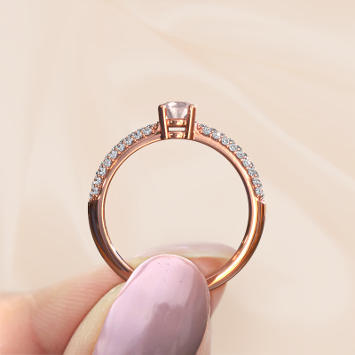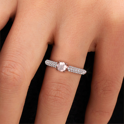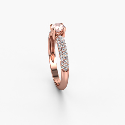 This pave set ring is called Marjan. This 14 Carat rose gold ring is set with morganite champagne 4.2 mm. The band of this rose gold ring is set with rows of morganite champagne which seem to have no beginning nor end. Our goldsmith carefully selects the gemstones and sets them with the utmost precision. For maximum shine, the morganite champagne have to align perfectly. While artfully crafting and polishing the jewellery, light fall is constantly monitored, until the expert goldsmith is satisfied with the result. Designed by you, created especially for you!Our goldsmiths passionately create your customized ring to your liking with the utmost care. The rose gold ring, as shown here, can be customized using our online tool. Feel free to ask our jewel designers for assistance if you want changes made which are unavailable in our online tool. We are happy to answer your questions.After receiving your order, our goldsmiths will passionately start the creative process of making your ring in our own studio. Because we don't have a big stockpile, these costs will not be passed on to you. Our pricing is proof of that! We offer top quality jewels at lowest price, guaranteed.To make it easier for you, we offer a 30 day return policy. Check our terms and conditions.
