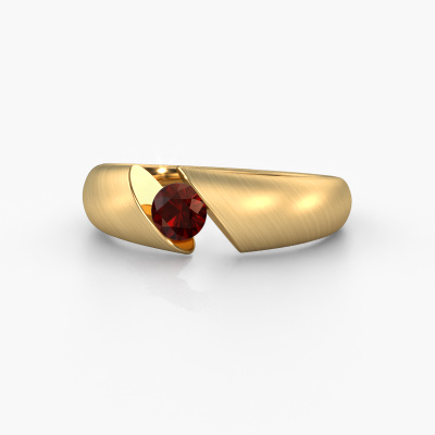 This ring called Hojalien 1 is made of 14 Carat gold and is set with garnet. Are you in the market for a unique gold ring with a modern twist? Then this ring might suit you. Simply customize to your or her liking. It suits the contemporary modern woman. This tasteful ring is set with beautiful garnet. This has been carefully selected. Because your ring must be adorned with nothing but the most stunning gemstone. Our expert goldsmith will create your ring in our own studio, where the garnet will be set with great care. The ring will then be polished to perfection to create a stunning ring. By using our modern techniques, we can design and customize the finest quality jewels with the utmost care for you. Our rings are always priced 30 percent lower than other jewellers. We make rings to order, so we don't have to maintain a large stock. If you have a certain budget, we are more than happy to advice you accordingly.