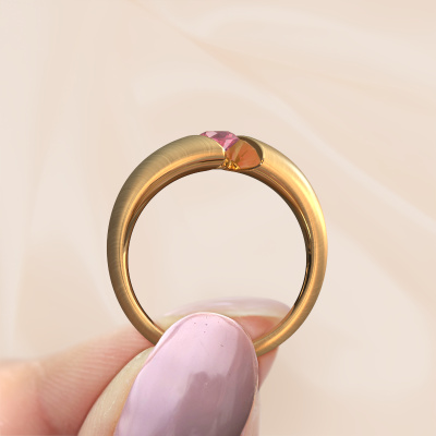 This ring called Hojalien 1 is made of 14 Carat gold and is set with tourmaline pink. Are you in the market for a unique gold ring with a modern twist? Then this ring might suit you. Simply customize to your or her liking. It suits the contemporary modern woman. This tasteful ring is set with beautiful tourmaline pink. This has been carefully selected. Because your ring must be adorned with nothing but the most stunning gemstone. Our expert goldsmith will create your ring in our own studio, where the tourmaline pink will be set with great care. The ring will then be polished to perfection to create a stunning ring. By using our modern techniques, we can design and customize the finest quality jewels with the utmost care for you. Our rings are always priced 30 percent lower than other jewellers. We make rings to order, so we don't have to maintain a large stock. If you have a certain budget, we are more than happy to advice you accordingly.