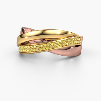 This ring called Katherina is made of 14 Carat rose gold and is set with yellow sapphire. Are you in the market for a unique rose gold ring with a modern twist? Then this ring might suit you. Simply customize to your or her liking. It suits the contemporary modern woman. This tasteful ring is set with beautiful yellow sapphire. This has been carefully selected. Because your ring must be adorned with nothing but the most stunning gemstone. Our expert goldsmith will create your ring in our own studio, where the yellow sapphire will be set with great care. The ring will then be polished to perfection to create a stunning ring. By using a combination of the latest modern techniques, combined with ancient crafting, we can make all our rings in our own studio. Each jewel is made to order. This is advantageous because we can offer you a price you won't find anywhere else.New jewellery designs are added to our online collection daily. Our team of passionate designers strive to create extraordinary and diverse designs. Have you seen a ring you like? Please feel free to contact us. Based on a good price/ quality ratio, we will make you an offer you can't refuse!To make it easier for you, we offer a 30 day return policy. Check our terms and conditions.