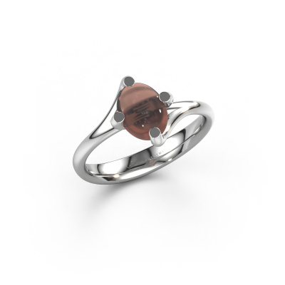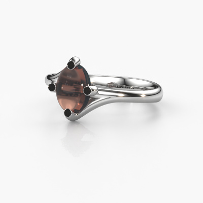 In this photo the platinum Nora ring is set with a cabochon smokey quartz. Cabochon means a smokey quartz is shaped first, not faceted, into a specific shape, such as a drop, heart or oval cabochon. Subsequently, it is polished until the gemstone has a orb shaped surface. A cabochon gemstone is a stunning, classy eye-catcher that matches perfectly with a contemporary as well as a vintage style. Our expert goldsmiths shape the graceful ring to perfection which makes it unique. The cabochon smokey quartz is set so its unique qualities are strengthened. How do you like this trendy platinum ring? Simply customize this Nora ring, using our online tool. Subsequently, your personal graceful Nora ring will be made by hand by our goldsmiths. Precious metals and gemstones can be customized to your liking. Do you have specific preferences which are unavailable in our online tool? Please feel free to contact us. We will customize your personal trendy ring to your liking.After receiving your order, our goldsmiths will passionately start the creative process of making your ring in our own studio. Because we don't have a big stockpile, these costs will not be passed on to you. Our pricing is proof of that! We offer top quality jewels at lowest price, guaranteed.To make it easier for you, we offer a 30 day return policy. Check our terms and conditions.