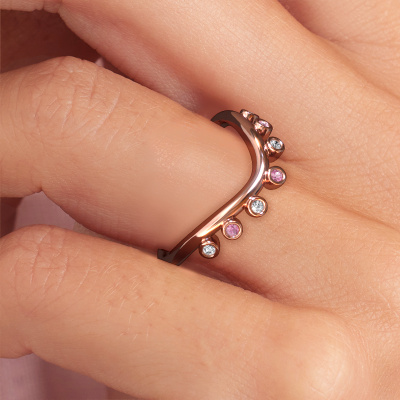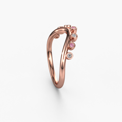 This Drop B stacking ring in 14 Carat rose gold is set with pink sapphire. This rose gold stacked Drop B ring is the perfect addition to your ring collection! As the name suggests, it is a ring which can be combined on one finger with another ring. It gives you the opportunity to create your own style. A stacked ring usually represents a certain memory of someone special or a memorable moment. It is common to combine a stacked ring, representing an anniversary, with a wedding ring. But this beautiful ring, combined with your other rings, also makes a classy fashion item. Customize your own beautifulDrop B stacking ring, which will then be created by our goldsmiths with great passion. Do you prefer a different option than is shown here in the rose gold Drop B stacking ring? Then our online tools offers various options. Feel free to ask us for help if you are unable to succeed. We are happy to answer your questions!By using a combination of the latest modern techniques, combined with ancient crafting, we can make all our rings in our own studio. Each jewel is made to order. This is advantageous because we can offer you a price you won't find anywhere else.To make it easier for you, we offer a 30 day return policy. Check our terms and conditions.