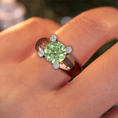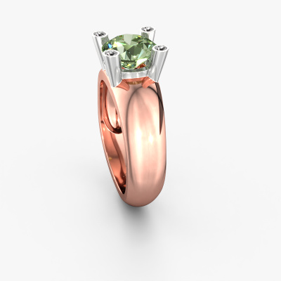Are you looking for a special ring with an eye-catching single gemstone? How do you like this Tamara RND ring? This rose gold Tamara RND ring is set with a beautiful 8 mm round green lab grown diamond. The green lab grown diamond is carefully selected by our green lab grown diamonds suppliers. Subsequently, these gemstones are then set by our goldsmith according to ancient tradition. The ring will then be polished to perfection creating a unique ring with a stunning green lab grown diamond. Created especially for you. The best part of this special ring is that you can customize it to your own liking. Your style, your choice, your ring. On top of that, your trendy rose gold ring will be made by hand with eco-friendly materials! Please feel free to easily customize the ring, using our online tool.By using a combination of the latest modern techniques, combined with ancient crafting, we can make all our rings in our own studio. Each jewel is made to order. This is advantageous because we can offer you a price you won't find anywhere else.To make it easier for you, we offer a 30 day return policy. Check our terms and conditions.