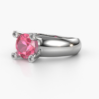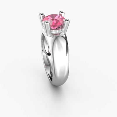 Are you looking for a special ring with an eye-catching single gemstone? How do you like this Tamara RND ring? This white gold Tamara RND ring is set with a beautiful 8 mm round pink sapphire. The pink sapphire is carefully selected by our pink sapphire suppliers. Subsequently, these gemstones are then set by our goldsmith according to ancient tradition. The ring will then be polished to perfection creating a unique ring with a stunning pink sapphire. Created especially for you. The best part of this special ring is that you can customize it to your own liking. Your style, your choice, your ring. On top of that, your trendy white gold ring will be made by hand with eco-friendly materials! Please feel free to easily customize the ring, using our online tool.By using a combination of the latest modern techniques, combined with ancient crafting, we can make all our rings in our own studio. Each jewel is made to order. This is advantageous because we can offer you a price you won't find anywhere else.To make it easier for you, we offer a 30 day return policy. Check our terms and conditions.