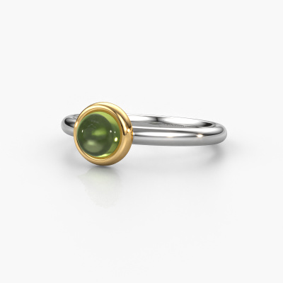 In this photo the white gold Blossom ring is set with a cabochon peridot. Cabochon means a peridot is shaped first, not faceted, into a specific shape, such as a drop, heart or round cabochon. Subsequently, it is polished until the gemstone has a orb shaped surface. A cabochon gemstone is a stunning, classy eye-catcher that matches perfectly with a contemporary as well as a vintage style. Our expert goldsmiths shape the charming ring to perfection which makes it unique. The cabochon peridot is set so its unique qualities are strengthened. The charming Blossom ring, as shown here, can be customized to your liking. Our online tool offers many different options but please feel free to contact us if you want changes made to your Blossom ring, which are unavailable in our online tool.Because we design and deliver our own rings, we can offer you a ring at a price you won't find anywhere else. A ring is made to order, which helps prevent excess supplies, so we can make you a great price offer. We understand it feels risky, buying your ring online, but we will gladly assist in the designing process, taking your budget into consideration.To make it easier for you, we offer a 30 day return policy. Check our terms and conditions.