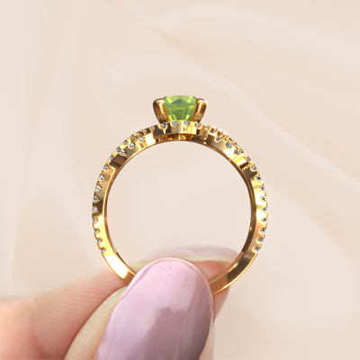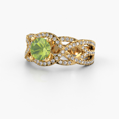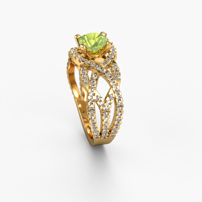 How would you describe your own style? Are you looking for something uniquely different? This graceful gold Jeni ring is astonishing! Simply customize to your or her own liking. This ring is set with peridot. These peridot have been carefully selected because your ring must be adorned with nothing but the most beautiful gemstone. Wouldn't you agree? Our expert goldsmith will create your ring in our own crafting studios, where the peridot will be set with care. The ring will then be polished to perfection to give it that extra sparkle. It's a perfect ring for a woman of excellent taste!The best part of this graceful ring is that you can customize it to your own liking. Your style, your choice, your ring. On top of that, your vintage gold ring will be made by hand with eco-friendly materials! Please feel free to easily customize the ring, using our online tool.By using a combination of the latest modern techniques, combined with ancient crafting, we can make all our rings in our own studio. Each jewel is made to order. This is advantageous because we can offer you a price you won't find anywhere else.To make it easier for you, we offer a 30 day return policy. Check our terms and conditions.