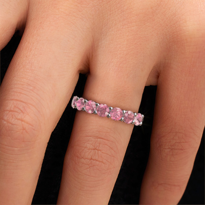This ring is called Heddy Half. It is made of 14 Carat white gold and is set with 3.7 mm tourmaline pink. Are you looking for a unique white gold ring with a modern appearance? Then this is the ring for you. Simply customize to your or her liking. Perfect for a modern, contemporary woman! This half eternity ring is adorned with stunning tourmaline pink. It was carefully selected because your ring must be adorned with nothing but the most beautiful gemstones. Our expert goldsmith will create your ring in our own studio, where the tourmaline pink will be set with great care. The ring will then be polished to perfection to create a beautiful ring. Are you on a budget? Please feel free to contact us, so we can go discuss your options. We offer our rings at guaranteed best price, because we make them to order. You won't find such a price anywhere else!Our team of talented, passionate designers add new ring designs to our online collection daily. Our objective in doing so, is to be able to offer you a wide variety of jewels. Please feel free to request a quote if you have specific wishes for your ring. We guarantee to make you an offer you can't refuse.To make it easier for you, we offer a 30 day return policy. Check our terms and conditions.