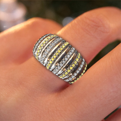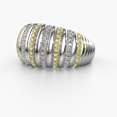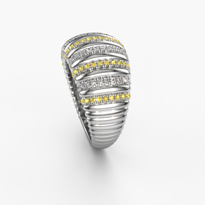 This is a stunning wide white gold Dawn 12mm ring. It is set with yellow sapphire. A designer ring, fit for classy women. The ring is designed by our own expert goldsmiths. In our artisan studio, we use a combination of the latest techniques and ancient traditional craftsmanship, so we are able to create a perfectly designed ring. Our expert goldsmiths strive for perfection so they won't stop until a perfect ring, a true work of art, is created. A unique ring which matches your own style. The wide Dawn 12mm ring, as shown here, can be customized to your liking. Our online tool offers many different options but please feel free to contact us if you want changes made to your Dawn 12mm ring, which are unavailable in our online tool.By using a combination of the latest modern techniques, combined with ancient crafting, we can make all our rings in our own studio. Each jewel is made to order. This is advantageous because we can offer you a price you won't find anywhere else.To make it easier for you, we offer a 30 day return policy. Check our terms and conditions.