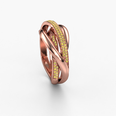 Because of its detailed finish, this wide ring with yellow sapphire has a stylish appearance. A wide ring that fits the contemporary woman like a glove. This rose gold ring, our Candice, is a true eye-catcher indeed! As soon as we know what you desire, we will create your ring in our own crafting studio. We work according an innovative process. We use a combination of the latest techniques and ancient traditional craftsmanship, so we are able to create a perfectly designed ring. Our expert goldsmiths strive for perfection so they won't stop until a perfect ring, a true work of art, is created especially for you!As soon as you finished designing your Candice ring with our online tool, our goldsmiths will start their creative process of making your ring. This will be done with passion and care, according ancient crafting. On top of that, our jewels are made of eco-friendly materials. Simply customize online with our online tool, if you want any changes made. If you want specific changes made to your Candice ring, that are unavailable in our online tool, please feel free to contact our expert designers.After receiving your order, our goldsmiths will passionately start the creative process of making your ring in our own studio. Because we don't have a big stockpile, these costs will not be passed on to you. Our pricing is proof of that! We offer top quality jewels at lowest price, guaranteed.To make it easier for you, we offer a 30 day return policy. Check our terms and conditions.