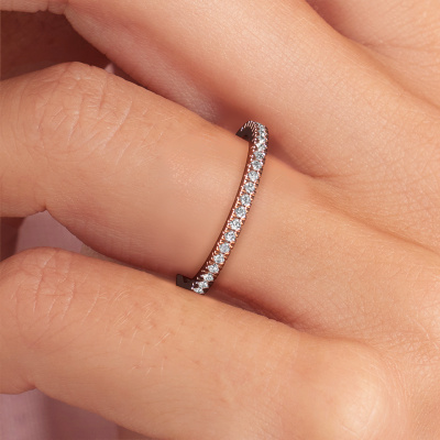 This SRH0539C10H4 stackable ring in 14 Carat rose gold is set with diamond. This rose gold stacked SRH0539C10H4 ring is the perfect addition to your ring collection! As the name suggests, it is a ring which can be combined on one finger with another ring. It gives you the opportunity to create your own style. A stacked ring usually represents a certain memory of someone special or a memorable moment. It is common to combine a stacked ring, representing an anniversary, with a wedding ring. But this beautiful ring, combined with your other rings, also makes a classy fashion item. Customize your own beautifulSRH0539C10H4 stackable ring, which will then be created by our goldsmiths with great passion. Do you prefer a different option than is shown here in the rose gold SRH0539C10H4 stackable ring? Then our online tools offers various options. Feel free to ask us for help if you are unable to succeed. We are happy to answer your questions!Are you on a budget? Please feel free to contact us, so we can go discuss your options. We offer our rings at guaranteed best price, because we make them to order. You won't find such a price anywhere else!To make it easier for you, we offer a 30 day return policy. Check our terms and conditions.