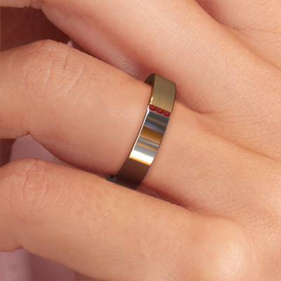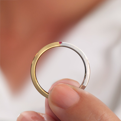 This fashionable mat/shiny ladies wedding ring with flat profile is an extraordinary ring to memorialize your love. A timeless wedding ring set with carefully selected ruby. In this example, the gold WH1103L14AMP wedding ring is set with round ruby 1.2 mm. Our goldsmiths use the latest modern techniques, combined with ancient craftsmanship and they will make your ring in our own artisan studio. Resulting in a unique, handmade ±0.16x0.07 in wedding ring, which was created to perfection, and matches your style flawlessly. After designing your ring, our jewel designer will start working on it. He will make a graphic 3D design of your wedding ring. This can also be used to make a dummy ring. Simply order a dummy ring and see for yourself how your ring will turn out. Subsequently, our expert goldsmith will create your ring in our own artisan studio. We use eco-friendly gold, so you get a ring, we are proud of, which looks good inside and out. You can also send us your own gold. Because we create your ring by hand, we can use your own gold. Our goal is to create an exquisite sparkling wedding ring just as envisioned it!This wedding ring can also serve as a source of inspiration. Would you like the ring to have a matte or shiny finish (at no additional cost), or would you prefer it to be wider or narrower? Anything is possible. Because there are countless variations, we can’t show everything on our website. Do you have an idea for beautiful wedding rings, or have you seen a stunning set of wedding rings elsewhere? Feel free to contact us; our designers are ready to assist you.By combining our modern techniques with ancient crafting, we can design and customize the finest quality jewels with the utmost care for you at the best price. Our wedding rings are always priced 30% lower than those of other jewellers. We make wedding rings to order so we don't have to maintain a large stock.To make it easier for you, we offer a 30 day return policy. Check our terms and conditions.