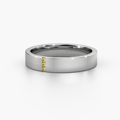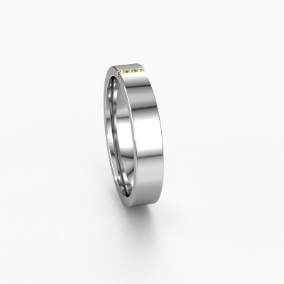 This fashionable mat/shiny ladies wedding ring with flat profile is an extraordinary ring to memorialize your love. A timeless wedding ring set with carefully selected yellow sapphire. In this example, the white gold WH1103L14AMP wedding ring is set with round yellow sapphire 1.2 mm. Our goldsmiths use the latest modern techniques, combined with ancient craftsmanship and they will make your ring in our own artisan studio. Resulting in a unique, handmade ±0.16x0.07 in wedding ring, which was created to perfection, and matches your style flawlessly. After designing your ring, our jewel designer will start working on it. He will make a graphic 3D design of your wedding ring. This can also be used to make a dummy ring. Simply order a dummy ring and see for yourself how your ring will turn out. Subsequently, our expert goldsmith will create your ring in our own artisan studio. We use eco-friendly gold, so you get a ring, we are proud of, which looks good inside and out. You can also send us your own gold. Because we create your ring by hand, we can use your own gold. Our goal is to create an exquisite sparkling wedding ring just as envisioned it!This wedding ring can also serve as a source of inspiration. Would you like the ring to have a matte or shiny finish (at no additional cost), or would you prefer it to be wider or narrower? Anything is possible. Because there are countless variations, we can’t show everything on our website. Do you have an idea for beautiful wedding rings, or have you seen a stunning set of wedding rings elsewhere? Feel free to contact us; our designers are ready to assist you.By combining our modern techniques with ancient crafting, we can design and customize the finest quality jewels with the utmost care for you at the best price. Our wedding rings are always priced 30% lower than those of other jewellers. We make wedding rings to order so we don't have to maintain a large stock.To make it easier for you, we offer a 30 day return policy. Check our terms and conditions.
