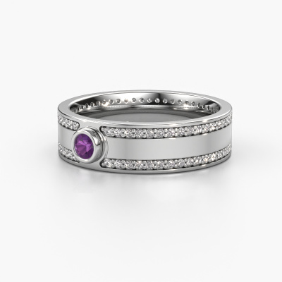 If you are looking for an exclusive, exclusive wedding ring with an exquisite look, this ring is perfect for you. Because it can be customized to your style, this wedding ring can be turned into a unique, exclusive piece of jewellery. This exclusive ladies wedding ring is a perfect combination of ancient craftsmanship, love, passion and the latest modern techniques. This exclusive WH2044P wedding ring is set with amethyst 3 mm, is ±0.24 in wide and has a shiny finish. The jewel designer, member of a specialized team, will make a graphic 3D design of your wedding ring. If it pleases you, you can also order a ring dummy so you can try it on and see your ring before creation. Subsequently, our goldsmith will create your unique wedding ring with great care in our own crafting studio. A meticulous job, because both creating as well as finishing your ring requires a keen eye. And that is what makes our craft special. Your unique wedding ring is the result of true passionate craftsmanship!This wedding ring can also serve as a source of inspiration. Would you like the ring to have a matte or shiny finish (at no additional cost), or would you prefer it to be wider or narrower? Anything is possible. Because there are countless variations, we can’t show everything on our website. Do you have an idea for beautiful wedding rings, or have you seen a stunning set of wedding rings elsewhere? Feel free to contact us; our designers are ready to assist you.After receiving your order, our goldsmiths will start the creative process of making your wedding rings. We don't keep stock. This is advantageous because these costs will not be passed on to you. Therefore, our quality wedding rings are always priced 30 percent lower than those of other jewellers.To make it easier for you, we offer a 30 day return policy. Check our terms and conditions.