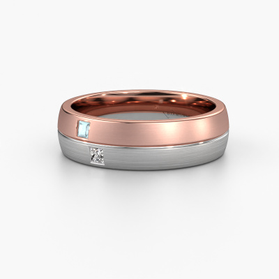 A unique two-tone rose gold ladies wedding ring, designed by you, and then artfully crafted by our goldsmith in our own artisan studio! A beautiful symbol, reflecting your love, which you carry with you for a lifetime! Each ring we offer is artfully forged by hand in our own crafting studio. This makes it possible for us to create you a ring which is customized to your liking, completely mat your style. This modern WH0250L26BM wedding ring is set with aquamarine, is ±0.24 in wide and has a matte finish. After designing your ring, our jewel designer will start working on it. He will make a graphic 3D design of your wedding ring. This can also be used to make a dummy ring. Simply order a dummy ring and see for yourself how your ring will turn out. Subsequently, our expert goldsmith will create your ring in our own artisan studio. We use eco-friendly gold, so you get a ring, we are proud of, which looks good inside and out. You can also send us your own gold. Because we create your ring by hand, we can use your own gold. Our goal is to create an exquisite sparkling wedding ring just as envisioned it!By the way, you can be inspired by this wedding ring and have it further adjusted to your taste. Do you prefer a smaller band or a wider one? Do you prefer a shiny ring or a matte one? Anything is possible. Also, if you have an idea of your own for extraordinary wedding rings, or if you have seen a beautiful set somewhere else that you really like and would like to have adjusted to your personal taste: no problem! don't hesitate to contact us. Our designers will gladly discuss your possibilities with you!Because we design our wedding rings ourselves, and deliver it directly to you, we can offer you wedding rings at a price you won't find anywhere else. Our rings are made to order, which helps prevent excess supplies, so we can make you a great price offer.To make it easier for you, we offer a 30 day return policy. Check our terms and conditions.