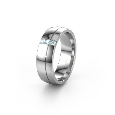 A unique two-tone white gold ladies wedding ring, designed by you, and then artfully crafted by our goldsmith in our own artisan studio! A beautiful symbol, reflecting your love, which you carry with you for a lifetime! Each ring we offer is artfully forged by hand in our own crafting studio. This makes it possible for us to create you a ring which is customized to your liking, completely shiny your style. This modern WH0223L56A wedding ring is set with aquamarine, is ±0.24 in wide and has a shiny finish. The jewel designer, member of a specialized team, will make a graphic 3D design of your wedding ring. If it pleases you, you can also order a ring dummy so you can try it on and see your ring before creation. Subsequently, our goldsmith will create your unique wedding ring with great care in our own crafting studio. A meticulous job, because both creating as well as finishing your ring requires a keen eye. And that is what makes our craft special. Your unique wedding ring is the result of true passionate craftsmanship!By the way, you can be inspired by this wedding ring and have it further adjusted to your taste. Do you prefer a smaller band or a wider one? Do you prefer a shiny ring or a matte one? Anything is possible. Also, if you have an idea of your own for extraordinary wedding rings, or if you have seen a beautiful set somewhere else that you really like and would like to have adjusted to your personal taste: no problem! don't hesitate to contact us. Our designers will gladly discuss your possibilities with you!After receiving your order, our goldsmiths will start the creative process of making your wedding rings. We don't keep stock. This is advantageous because these costs will not be passed on to you. Therefore, our quality wedding rings are always priced 30 percent lower than those of other jewellers.To make it easier for you, we offer a 30 day return policy. Check our terms and conditions.