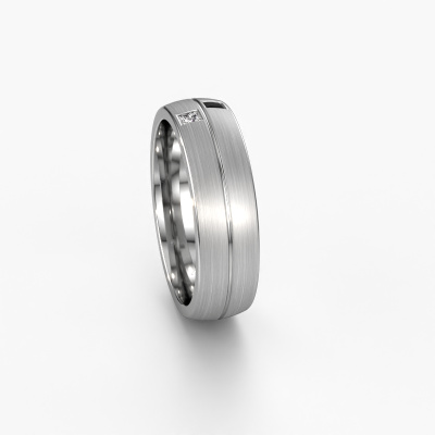 A unique two-tone white gold ladies wedding ring, designed by you, and then artfully crafted by our goldsmith in our own artisan studio! A beautiful symbol, reflecting your love, which you carry with you for a lifetime! Each ring we offer is artfully forged by hand in our own crafting studio. This makes it possible for us to create you a ring which is customized to your liking, completely mat your style. This modern WH0250L26BM wedding ring is set with black diamond, is ±0.24 in wide and has a matte finish. After designing your ring, our jewel designer will start working on it. He will make a graphic 3D design of your wedding ring. This can also be used to make a dummy ring. Simply order a dummy ring and see for yourself how your ring will turn out. Subsequently, our expert goldsmith will create your ring in our own artisan studio. We use eco-friendly gold, so you get a ring, we are proud of, which looks good inside and out. You can also send us your own gold. Because we create your ring by hand, we can use your own gold. Our goal is to create an exquisite sparkling wedding ring just as envisioned it!By the way, you can be inspired by this wedding ring and have it further adjusted to your taste. Do you prefer a smaller band or a wider one? Do you prefer a shiny ring or a matte one? Anything is possible. Also, if you have an idea of your own for extraordinary wedding rings, or if you have seen a beautiful set somewhere else that you really like and would like to have adjusted to your personal taste: no problem! don't hesitate to contact us. Our designers will gladly discuss your possibilities with you!Because we design our wedding rings ourselves, and deliver it directly to you, we can offer you wedding rings at a price you won't find anywhere else. Our rings are made to order, which helps prevent excess supplies, so we can make you a great price offer.To make it easier for you, we offer a 30 day return policy. Check our terms and conditions.