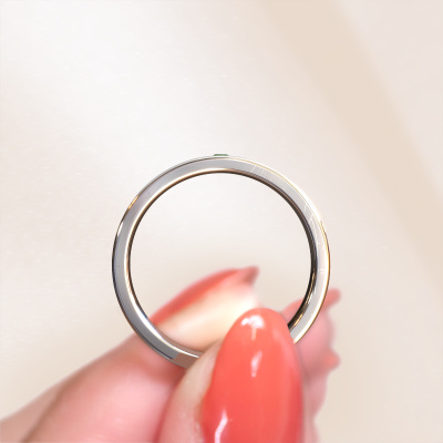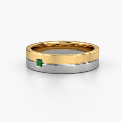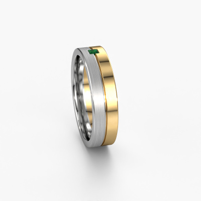 A unique two-tone gold ladies wedding ring, designed by you, and then artfully crafted by our goldsmith in our own artisan studio! A beautiful symbol, reflecting your love, which you carry with you for a lifetime! Each ring we offer is artfully forged by hand in our own crafting studio. This makes it possible for us to create you a ring which is customized to your liking, completely mat/shiny your style. This modern WH0201L15ASQPM wedding ring is set with emerald, is ±0.20 in wide and has a mat/shiny finish. You can choose the combination of precious metals of your preference in our online tool. Anything goes! It is wise to browse through the characteristics of each different precious metal. For example, gold and silver are softer metals. Carat is determined by the amount of added extra metals. If the goldsmith doesn't add a lot, carat is higher and the wedding ring will be softer. If he adds more metals, the jewel has a lower amount of carat. A softer precious metal can still be used for your modern wedding ring! If you prefer a precious metal which will last a lifetime, we recommend platinum. This is the most solid and durable metal our goldsmith uses.Be inspired by our designs, and adjust this wedding ring to your own personal taste: wider or smaller, shiny or matte? No problem! Even if you have ideas of your own for special wedding rings, our jewellery designers are lined up to help you design the ring of your dreams. don't hesitate to contact us!After receiving your order, our goldsmiths will start the creative process of making your wedding rings in our own crafting studio. We don't keep stock. This is advantageous because these costs will not be passed on to you. Therefore, we can offer the finest quality jewellery at exceptionally low prices.To make it easier for you, we offer a 30 day return policy. Check our terms and conditions.