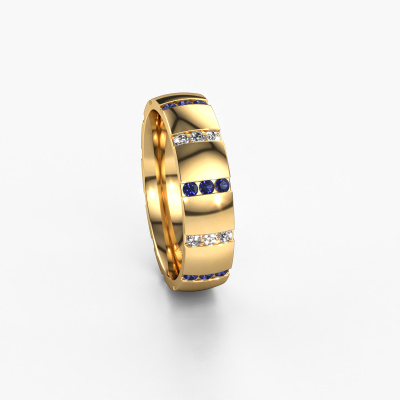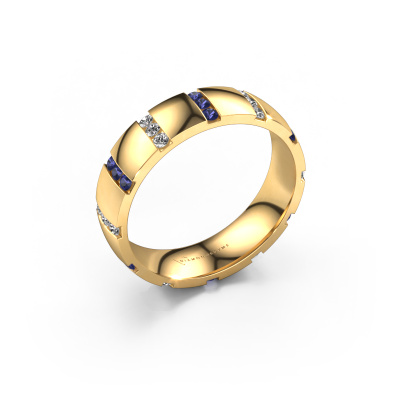 If you are looking for an exclusive, design weddings ring with an exquisite look, this ring is perfect for you. Because it can be customized to your style, this weddings ring can be turned into a unique, exclusive piece of jewellery. This design ladies weddings ring is a perfect combination of ancient craftsmanship, love, passion and the latest modern techniques. This design Juul weddings ring is set with sapphire 1.5 mm, is ±0.20 in wide and has a shiny finish. After designing your ring, our jewel designer will start working on it. He will make a graphic 3D design of your weddings ring. This can also be used to make a dummy ring. Simply order a dummy ring and see for yourself how your ring will turn out. Subsequently, our expert goldsmith will create your ring in our own artisan studio. We use eco-friendly gold, so you get a ring, we are proud of, which looks good inside and out. You can also send us your own gold. Because we create your ring by hand, we can use your own gold. Our goal is to create an exquisite sparkling weddings ring just as envisioned it!Do you have special preferences regarding your weddings ring? For instance, a smaller or a wider band? Or perhaps a shiny or a matte ring? There are numerous variations possible. You can always discuss the possibilities with our jewellery designers. If you have certain wedding rings in mind, our designers will gladly help by drawing the rings of your dreams. Be sure to contact us!Because we design and deliver our own wedding rings, we can offer you wedding rings at a price you won't find anywhere else. A ring is made to order, which helps prevent excess supplies, so we can make you a great price offer.To make it easier for you, we offer a 30 day return policy. Check our terms and conditions.