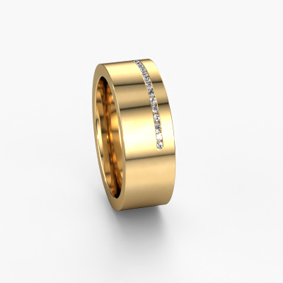 A truly stylish 14 Carat modern wedding ring! This exquisite ladies wedding ring, as shown above, is set with round lab grown diamond. Our goldsmiths make each gold wedding ring by hand in our own artisan studio and because of that, the lab-grown diamonds are set with the utmost precision. This causes light to reflect evenly from every angle of the lab grown diamond. The width of this modern WH0143L17BP wedding ring is ±0.28 in and the finish is shiny. The jewel designer, member of a specialized team, will make a graphic 3D design of your wedding ring. If it pleases you, you can also order a ring dummy so you can try it on and see your ring before creation. Subsequently, our goldsmith will create your unique wedding ring with great care in our own crafting studio. A meticulous job, because both creating as well as finishing your ring requires a keen eye. And that is what makes our craft special. Your unique wedding ring is the result of true passionate craftsmanship!Be inspired by our designs, and adjust this wedding ring to your own personal taste: wider or smaller, shiny or matte? No problem! Even if you have ideas of your own for special wedding rings, our jewellery designers are lined up to help you design the ring of your dreams. don't hesitate to contact us!After receiving your order, our goldsmiths will passionately start the creative process of making your wedding rings in our own artisan studio. Because we do not maintain a large stockpile, we can offer our jewellery at a lower price than other jewellers. Our pricing is proof of that! We offer top quality jewels at lowest price, guaranteed.To make it easier for you, we offer a 30 day return policy. Check our terms and conditions.