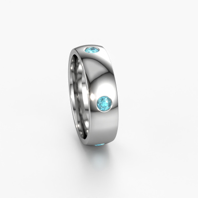 A truly stylish exclusive wedding ring! This exquisite ladies wedding ring, as shown above, is set with round blue topaz. Our goldsmiths make each platinum wedding ring by hand in our own artisan studio and because of that, the blue topaz are set with the utmost precision. This causes light to reflect evenly from every angle of the blue topaz. The width of this exclusive WH0104L26BP wedding ring is ±0.24 in and the finish is shiny. Gold represents love and therefore our goldsmith loves using it in the design of your exclusive wedding ring. We are a proud member of the Responsible Jewellery Council. This means we only use eco-friendly gold. Something we take great pride in, obviously. It is also possible to use your own gold in the design of your wedding ring. Each jewel is made by hand in our own artisan studio so we can offer this option. This gives you the opportunity to add an extra personal touch to your ring. A ring with its own history!By the way, you can be inspired by this wedding ring and have it further adjusted to your taste. Do you prefer a smaller band or a wider one? Do you prefer a shiny ring or a matte one? Anything is possible. Also, if you have an idea of your own for extraordinary wedding rings, or if you have seen a beautiful set somewhere else that you really like and would like to have adjusted to your personal taste: no problem! don't hesitate to contact us. Our designers will gladly discuss your possibilities with you!Because we design our wedding rings ourselves, and deliver it directly to you, we can offer you wedding rings at a price you won't find anywhere else. Our rings are made to order, which helps prevent excess supplies, so we can make you a great price offer.To make it easier for you, we offer a 30 day return policy. Check our terms and conditions.