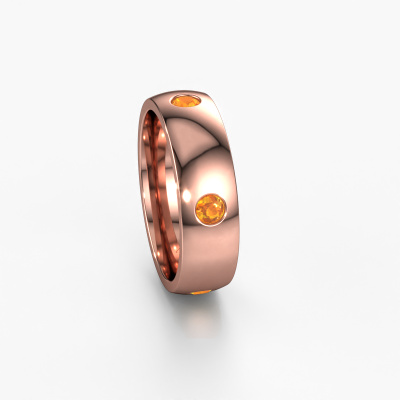 A truly stylish 14 Carat exclusive wedding ring! This exquisite ladies wedding ring, as shown above, is set with round citrin. Our goldsmiths make each rose gold wedding ring by hand in our own artisan studio and because of that, the citrin are set with the utmost precision. This causes light to reflect evenly from every angle of the citrin. The width of this exclusive WH0104L26BP wedding ring is ±0.24 in and the finish is shiny. Gold represents love and therefore our goldsmith loves using it in the design of your exclusive wedding ring. We are a proud member of the Responsible Jewellery Council. This means we only use eco-friendly gold. Something we take great pride in, obviously. It is also possible to use your own gold in the design of your wedding ring. Each jewel is made by hand in our own artisan studio so we can offer this option. This gives you the opportunity to add an extra personal touch to your ring. A ring with its own history!By the way, you can be inspired by this wedding ring and have it further adjusted to your taste. Do you prefer a smaller band or a wider one? Do you prefer a shiny ring or a matte one? Anything is possible. Also, if you have an idea of your own for extraordinary wedding rings, or if you have seen a beautiful set somewhere else that you really like and would like to have adjusted to your personal taste: no problem! don't hesitate to contact us. Our designers will gladly discuss your possibilities with you!Because we design our wedding rings ourselves, and deliver it directly to you, we can offer you wedding rings at a price you won't find anywhere else. Our rings are made to order, which helps prevent excess supplies, so we can make you a great price offer.To make it easier for you, we offer a 30 day return policy. Check our terms and conditions.