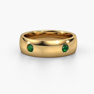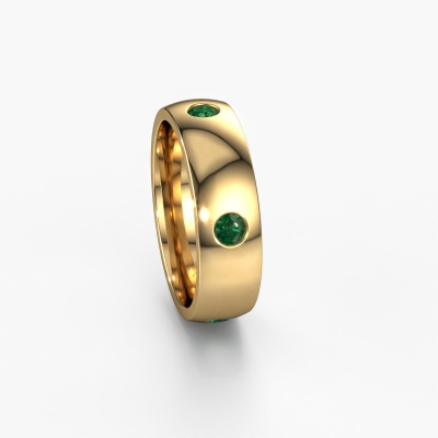 A truly stylish 14 Carat exclusive wedding ring! This exquisite ladies wedding ring, as shown above, is set with round emerald. Our goldsmiths make each gold wedding ring by hand in our own artisan studio and because of that, the emerald are set with the utmost precision. This causes light to reflect evenly from every angle of the emerald. The width of this exclusive WH0104L26BP wedding ring is ±0.24 in and the finish is shiny. Gold represents love and therefore our goldsmith loves using it in the design of your exclusive wedding ring. We are a proud member of the Responsible Jewellery Council. This means we only use eco-friendly gold. Something we take great pride in, obviously. It is also possible to use your own gold in the design of your wedding ring. Each jewel is made by hand in our own artisan studio so we can offer this option. This gives you the opportunity to add an extra personal touch to your ring. A ring with its own history!By the way, you can be inspired by this wedding ring and have it further adjusted to your taste. Do you prefer a smaller band or a wider one? Do you prefer a shiny ring or a matte one? Anything is possible. Also, if you have an idea of your own for extraordinary wedding rings, or if you have seen a beautiful set somewhere else that you really like and would like to have adjusted to your personal taste: no problem! don't hesitate to contact us. Our designers will gladly discuss your possibilities with you!Because we design our wedding rings ourselves, and deliver it directly to you, we can offer you wedding rings at a price you won't find anywhere else. Our rings are made to order, which helps prevent excess supplies, so we can make you a great price offer.To make it easier for you, we offer a 30 day return policy. Check our terms and conditions.