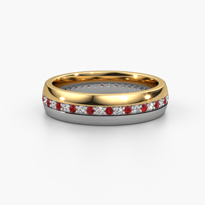 The exclusive Eternity wedding ring is a ring with a beautiful symbolic meaning. Because there appears to be no beginning nor end to the row of ruby. A beautiful way of expressing your everlasting love. A ring to wear until the end of all time, as a symbol of your union. This royal WH0203L25BPM ladies wedding ring has a width of ±0.20 in and is set with ruby 1.3 mm. You can choose the combination of precious metals of your preference in our online tool. Anything goes! It is wise to browse through the characteristics of each different precious metal. For example, gold and silver are softer metals. Carat is determined by the amount of added extra metals. If the goldsmith doesn't add a lot, carat is higher and the wedding ring will be softer. If he adds more metals, the jewel has a lower amount of carat. A softer precious metal can still be used for your exclusive wedding ring! If you prefer a precious metal which will last a lifetime, we recommend platinum. This is the most solid and durable metal our goldsmith uses.Do you have specific wishes regarding your wedding ring, but are you having difficulties finding the design on our website? The be sure to contact our designers! For instance, we can make the band smaller or wider. Do you prefer a matte finish? We can do that! Engravings are a great way of personalizing your rings, and applicable on most designs. Or, if you have an idea of your own for your extraordinary wedding rings, contact us! Our designers are up for the challenge of designing the ring of your dreams!Because we design our wedding rings ourselves, and deliver it directly to you, we can offer you wedding rings at a price you won't find anywhere else. Our rings are made to order, which helps prevent excess supplies, so we can make you a great price offer.To make it easier for you, we offer a 30 day return policy. Check our terms and conditions.