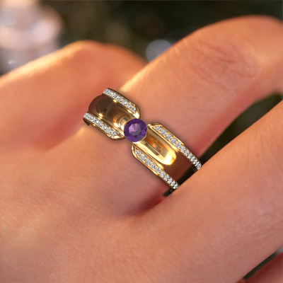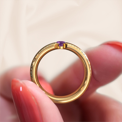 An extraordinary special ladies wedding ring! As unique as your relationship! No two people are alike and that is why you want a unique wedding ring. This luxury WHR0575L wedding ring is made by our jewel designers and crafted by hand by our goldsmith. In that process, We use pure craftsmanship combined with the latest techniques to achieve the best result. Our goldsmith strives for absolute perfection. A unique, handmade wedding ring, made to memorialize your big day! This luxury WHR0575L wedding ring is set with amethyst, is ±0.28 in wide and has a shiny finish.