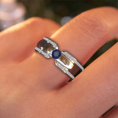 An extraordinary special ladies wedding ring! As unique as your relationship! No two people are alike and that is why you want a unique wedding ring. This luxury WHR0575L wedding ring is made by our jewel designers and crafted by hand by our goldsmith. In that process, We use pure craftsmanship combined with the latest techniques to achieve the best result. Our goldsmith strives for absolute perfection. A unique, handmade wedding ring, made to memorialize your big day! This luxury WHR0575L wedding ring is set with sapphire, is ±0.28 in wide and has a shiny finish.