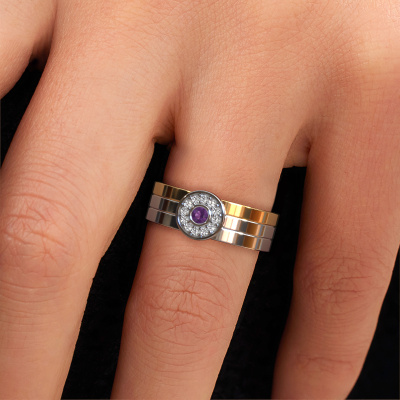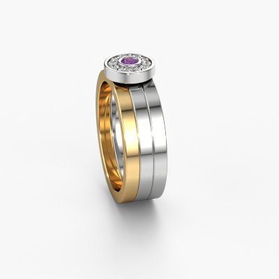 This modern ladies wedding ring is a stunning, contemporary wedding ring which truly symbolizes your unique love! Perfectly suited for men with a contemporary style. Simply customize the ring to your liking. Our goldsmith would take on any challenge of creating a perfect ring and will work on your ring, designed by you, in our own artisan studio. He will carefully and passionately create your WH2102L wedding ring by hand whilst using the most modern techniques, combined with pure craftsmanship. And this results in a unique, contemporary ring! This modern WH2102L wedding ring is set with round amethyst, is ±0.24 in wide and has a shiny finish. After ordering your wedding ring, our goldsmith will start creating your wedding ring immediately. Did you know we use the latest modern techniques, combined with ancient craftsmanship? This helps to create a 3D design of your jewel. You can order a dummy ring, if you please. This way you can check if the wedding ring meets your standard. Then, our goldsmith, who strives for perfection, will create your ring in our own artisan studio completely by hand. We feel passionate creating a unique ring each time. One which is finished to perfection. In the end, you get a wedding ring which matches your wishes.Do you have special preferences regarding your wedding ring? For instance, a smaller or a wider band? Or perhaps a shiny or a matte ring? There are numerous variations possible. You can always discuss the possibilities with our jewellery designers. If you have certain wedding rings in mind, our designers will gladly help by drawing the rings of your dreams. Be sure to contact us!After receiving your order, our goldsmiths will start the creative process of making your wedding rings. We don't keep stock. This is advantageous because these costs will not be passed on to you. Therefore, our quality wedding rings are always priced 30 percent lower than those of other jewellers.To make it easier for you, we offer a 30 day return policy. Check our terms and conditions.