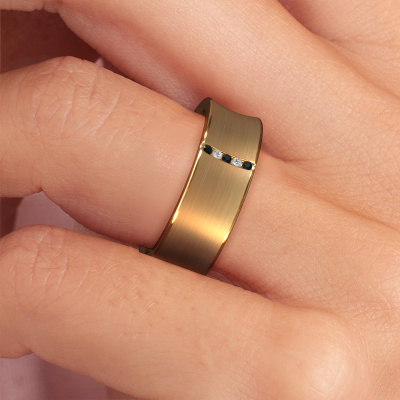An extraordinary special ladies wedding ring! As unique as your relationship! No two people are alike and that is why you want a unique wedding ring. This modern WH2021B wedding ring is made by our jewel designers and crafted by hand by our goldsmith. In that process, We use pure craftsmanship combined with the latest techniques to achieve the best result. Our goldsmith strives for absolute perfection. A unique, handmade wedding ring, made to memorialize your big day! This modern WH2021B wedding ring is set with black diamond, is ±0.28 in wide and has a mat/shiny finish. Gold represents love and therefore our goldsmith loves using it in the design of your modern wedding ring. We are a proud member of the Responsible Jewellery Council. This means we only use eco-friendly gold. Something we take great pride in, obviously. It is also possible to use your own gold in the design of your wedding ring. Each jewel is made by hand in our own artisan studio so we can offer this option. This gives you the opportunity to add an extra personal touch to your ring. A ring with its own history!Do you have special preferences regarding your wedding ring? For instance, a smaller or a wider band? Or perhaps a shiny or a matte ring? There are numerous variations possible. You can always discuss the possibilities with our jewellery designers. If you have certain wedding rings in mind, our designers will gladly help by drawing the rings of your dreams. Be sure to contact us!Because we design and deliver our own wedding rings, we can offer you wedding rings at a price you won't find anywhere else. A ring is made to order, which helps prevent excess supplies, so we can make you a great price offer.To make it easier for you, we offer a 30 day return policy. Check our terms and conditions.
