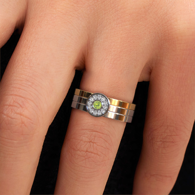 This modern ladies wedding ring is a stunning, contemporary wedding ring which truly symbolizes your unique love! Perfectly suited for men with a contemporary style. Simply customize the ring to your liking. Our goldsmith would take on any challenge of creating a perfect ring and will work on your ring, designed by you, in our own artisan studio. He will carefully and passionately create your WH2102L wedding ring by hand whilst using the most modern techniques, combined with pure craftsmanship. And this results in a unique, contemporary ring! This modern WH2102L wedding ring is set with round peridot, is ±0.24 in wide and has a shiny finish. After ordering your wedding ring, our goldsmith will start creating your wedding ring immediately. Did you know we use the latest modern techniques, combined with ancient craftsmanship? This helps to create a 3D design of your jewel. You can order a dummy ring, if you please. This way you can check if the wedding ring meets your standard. Then, our goldsmith, who strives for perfection, will create your ring in our own artisan studio completely by hand. We feel passionate creating a unique ring each time. One which is finished to perfection. In the end, you get a wedding ring which matches your wishes.Do you have special preferences regarding your wedding ring? For instance, a smaller or a wider band? Or perhaps a shiny or a matte ring? There are numerous variations possible. You can always discuss the possibilities with our jewellery designers. If you have certain wedding rings in mind, our designers will gladly help by drawing the rings of your dreams. Be sure to contact us!After receiving your order, our goldsmiths will start the creative process of making your wedding rings. We don't keep stock. This is advantageous because these costs will not be passed on to you. Therefore, our quality wedding rings are always priced 30 percent lower than those of other jewellers.To make it easier for you, we offer a 30 day return policy. Check our terms and conditions.