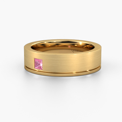 A truly stylish 14 Carat modern wedding ring! This exquisite ladies wedding ring, as shown above, is set with princess pink sapphire. Our goldsmiths make each gold wedding ring by hand in our own artisan studio and because of that, the pink sapphire are set with the utmost precision. This causes light to reflect evenly from every angle of the pink sapphire. The width of this modern WH0550L16CMP wedding ring is ±0.24 in and the finish is mat/shiny. The jewel designer, member of a specialized team, will make a graphic 3D design of your wedding ring. If it pleases you, you can also order a ring dummy so you can try it on and see your ring before creation. Subsequently, our goldsmith will create your unique wedding ring with great care in our own crafting studio. A meticulous job, because both creating as well as finishing your ring requires a keen eye. And that is what makes our craft special. Your unique wedding ring is the result of true passionate craftsmanship!Be inspired by our designs, and adjust this wedding ring to your own personal taste: wider or smaller, shiny or matte? No problem! Even if you have ideas of your own for special wedding rings, our jewellery designers are lined up to help you design the ring of your dreams. don't hesitate to contact us!After receiving your order, our goldsmiths will start the creative process of making your wedding rings. We don't keep stock. This is advantageous because these costs will not be passed on to you. Therefore, our quality wedding rings are always priced 30 percent lower than those of other jewellers.To make it easier for you, we offer a 30 day return policy. Check our terms and conditions.