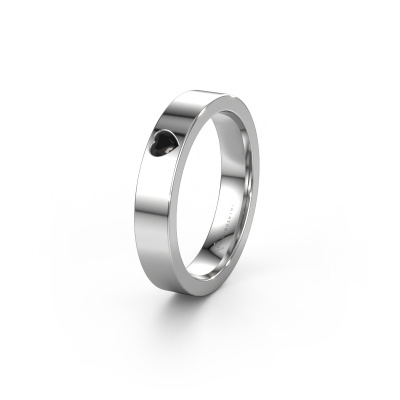 This modern shiny ladies wedding ring with flat profile is an extraordinary ring to memorialize your love. A timeless wedding ring set with carefully selected black diamonds. In this example, the platinum WH0101L14BPHRT wedding ring is set with heart black diamond 0.144 crt. Our goldsmiths use the latest modern techniques, combined with ancient craftsmanship and they will make your ring in our own artisan studio. Resulting in a unique, handmade ±0.16x0.08 in wedding ring, which was created to perfection, and matches your style flawlessly. After ordering your wedding ring, our goldsmith will start creating your wedding ring immediately. Did you know we use the latest modern techniques, combined with ancient craftsmanship? This helps to create a 3D design of your jewel. You can order a dummy ring, if you please. This way you can check if the wedding ring meets your standard. Then, our goldsmith, who strives for perfection, will create your ring in our own artisan studio completely by hand. We feel passionate creating a unique ring each time. One which is finished to perfection. In the end, you get a wedding ring which matches your wishes.Be inspired by our designs, and adjust this wedding ring to your own personal taste: wider or smaller, shiny or matte? No problem! Even if you have ideas of your own for special wedding rings, our jewellery designers are lined up to help you design the ring of your dreams. don't hesitate to contact us!After receiving your order, our goldsmiths will start the creative process of making your wedding rings in our own crafting studio. We don't keep stock. This is advantageous because these costs will not be passed on to you. Therefore, we can offer the finest quality jewellery at exceptionally low prices.To make it easier for you, we offer a 30 day return policy. Check our terms and conditions.