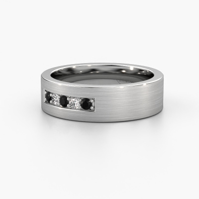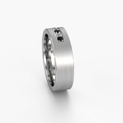 This modern matte ladies wedding ring with flat profile is an extraordinary ring to memorialize your love. A timeless wedding ring set with carefully selected black diamonds. In this example, the white gold WH0111L16BM wedding ring is set with round black diamond 0.168 crt. Our goldsmiths use the latest modern techniques, combined with ancient craftsmanship and they will make your ring in our own artisan studio. Resulting in a unique, handmade ±0.24x0.08 in wedding ring, which was created to perfection, and matches your style flawlessly. You can choose the combination of precious metals of your preference in our online tool. Anything goes! It is wise to browse through the characteristics of each different precious metal. For example, gold and silver are softer metals. Carat is determined by the amount of added extra metals. If the goldsmith doesn't add a lot, carat is higher and the wedding ring will be softer. If he adds more metals, the jewel has a lower amount of carat. A softer precious metal can still be used for your modern wedding ring! If you prefer a precious metal which will last a lifetime, we recommend platinum. This is the most solid and durable metal our goldsmith uses.This wedding ring can also serve as a source of inspiration. Would you like the ring to have a matte or shiny finish (at no additional cost), or would you prefer it to be wider or narrower? Anything is possible. Because there are countless variations, we can’t show everything on our website. Do you have an idea for beautiful wedding rings, or have you seen a stunning set of wedding rings elsewhere? Feel free to contact us; our designers are ready to assist you.After receiving your order, our goldsmiths will start the creative process of making your wedding rings. We don't keep stock. This is advantageous because these costs will not be passed on to you. Therefore, our quality wedding rings are always priced 30 percent lower than those of other jewellers.To make it easier for you, we offer a 30 day return policy. Check our terms and conditions.