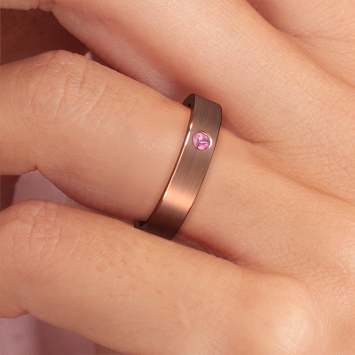 This modern ladies wedding ring is a stunning, contemporary wedding ring which truly symbolizes your unique love! Perfectly suited for men with a contemporary style. Simply customize the ring to your liking. Our goldsmith would take on any challenge of creating a perfect ring and will work on your ring, designed by you, in our own artisan studio. He will carefully and passionately create your WH0101L14AM wedding ring by hand whilst using the most modern techniques, combined with pure craftsmanship. And this results in a unique, contemporary ring! This modern WH0101L14AM wedding ring is set with round pink sapphire, is ±0.16 in wide and has a matte finish. After designing your ring, our jewel designer will start working on it. He will make a graphic 3D design of your wedding ring. This can also be used to make a dummy ring. Simply order a dummy ring and see for yourself how your ring will turn out. Subsequently, our expert goldsmith will create your ring in our own artisan studio. We use eco-friendly gold, so you get a ring, we are proud of, which looks good inside and out. You can also send us your own gold. Because we create your ring by hand, we can use your own gold. Our goal is to create an exquisite sparkling wedding ring just as envisioned it!By the way, you can be inspired by this wedding ring and have it further adjusted to your taste. Do you prefer a smaller band or a wider one? Do you prefer a shiny ring or a matte one? Anything is possible. Also, if you have an idea of your own for extraordinary wedding rings, or if you have seen a beautiful set somewhere else that you really like and would like to have adjusted to your personal taste: no problem! don't hesitate to contact us. Our designers will gladly discuss your possibilities with you!Because we design our wedding rings ourselves, and deliver it directly to you, we can offer you wedding rings at a price you won't find anywhere else. Our rings are made to order, which helps prevent excess supplies, so we can make you a great price offer.To make it easier for you, we offer a 30 day return policy. Check our terms and conditions.