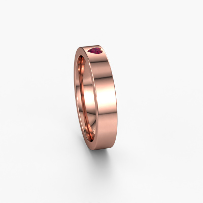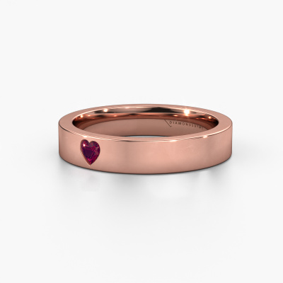 This modern shiny ladies wedding ring with flat profile is an extraordinary ring to memorialize your love. A timeless wedding ring set with carefully selected rhodolite. In this example, the rose gold WH0101L14BPHRT wedding ring is set with heart rhodolite 3 mm. Our goldsmiths use the latest modern techniques, combined with ancient craftsmanship and they will make your ring in our own artisan studio. Resulting in a unique, handmade ±0.16x0.08 in wedding ring, which was created to perfection, and matches your style flawlessly. After ordering your wedding ring, our goldsmith will start creating your wedding ring immediately. Did you know we use the latest modern techniques, combined with ancient craftsmanship? This helps to create a 3D design of your jewel. You can order a dummy ring, if you please. This way you can check if the wedding ring meets your standard. Then, our goldsmith, who strives for perfection, will create your ring in our own artisan studio completely by hand. We feel passionate creating a unique ring each time. One which is finished to perfection. In the end, you get a wedding ring which matches your wishes.Be inspired by our designs, and adjust this wedding ring to your own personal taste: wider or smaller, shiny or matte? No problem! Even if you have ideas of your own for special wedding rings, our jewellery designers are lined up to help you design the ring of your dreams. don't hesitate to contact us!After receiving your order, our goldsmiths will start the creative process of making your wedding rings in our own crafting studio. We don't keep stock. This is advantageous because these costs will not be passed on to you. Therefore, we can offer the finest quality jewellery at exceptionally low prices.To make it easier for you, we offer a 30 day return policy. Check our terms and conditions.